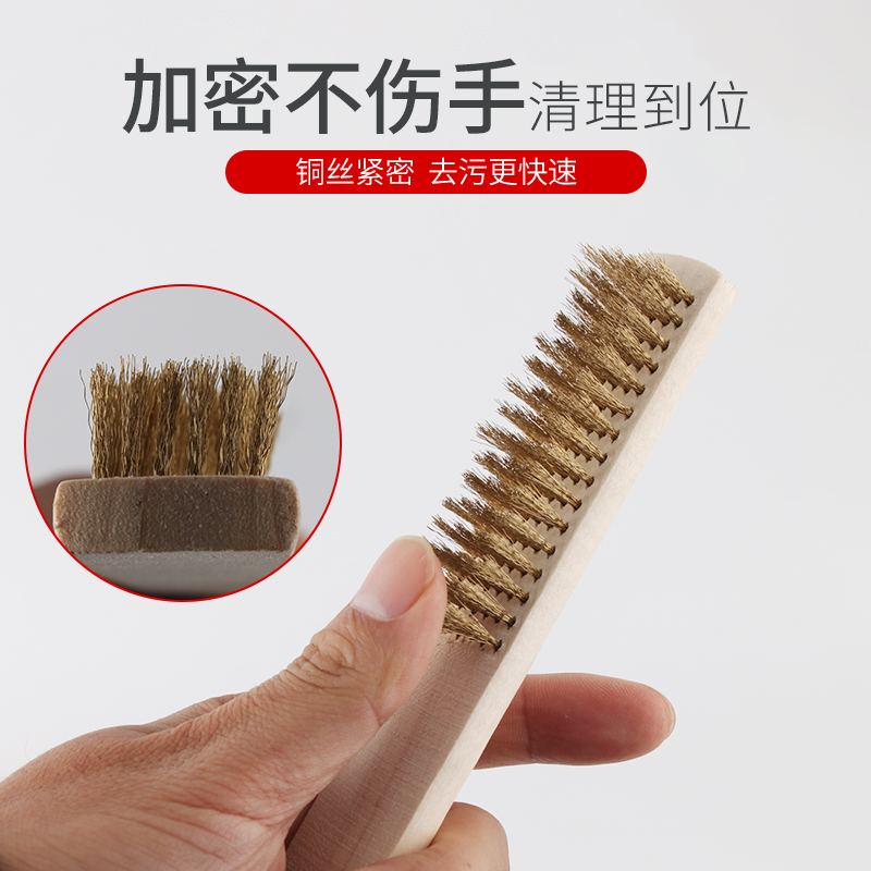 Copper brush polishing wood handle Industry clean brush brush brush brush fine copper wire pure copper text play rust