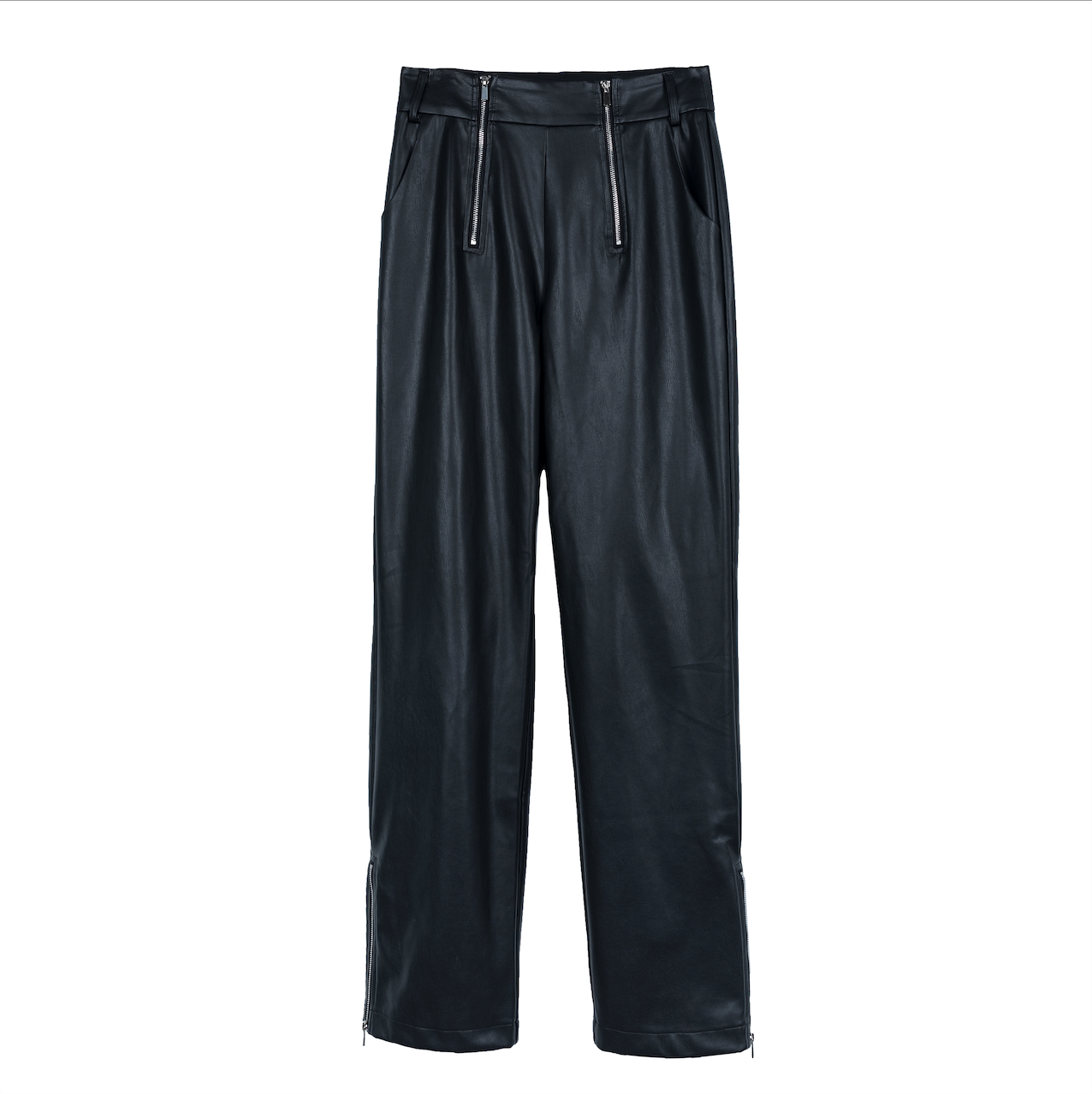 DTHEREAL]Clearance 21FW Front double zipper trousers slit zipper niche trend leather pants trousers for men and women