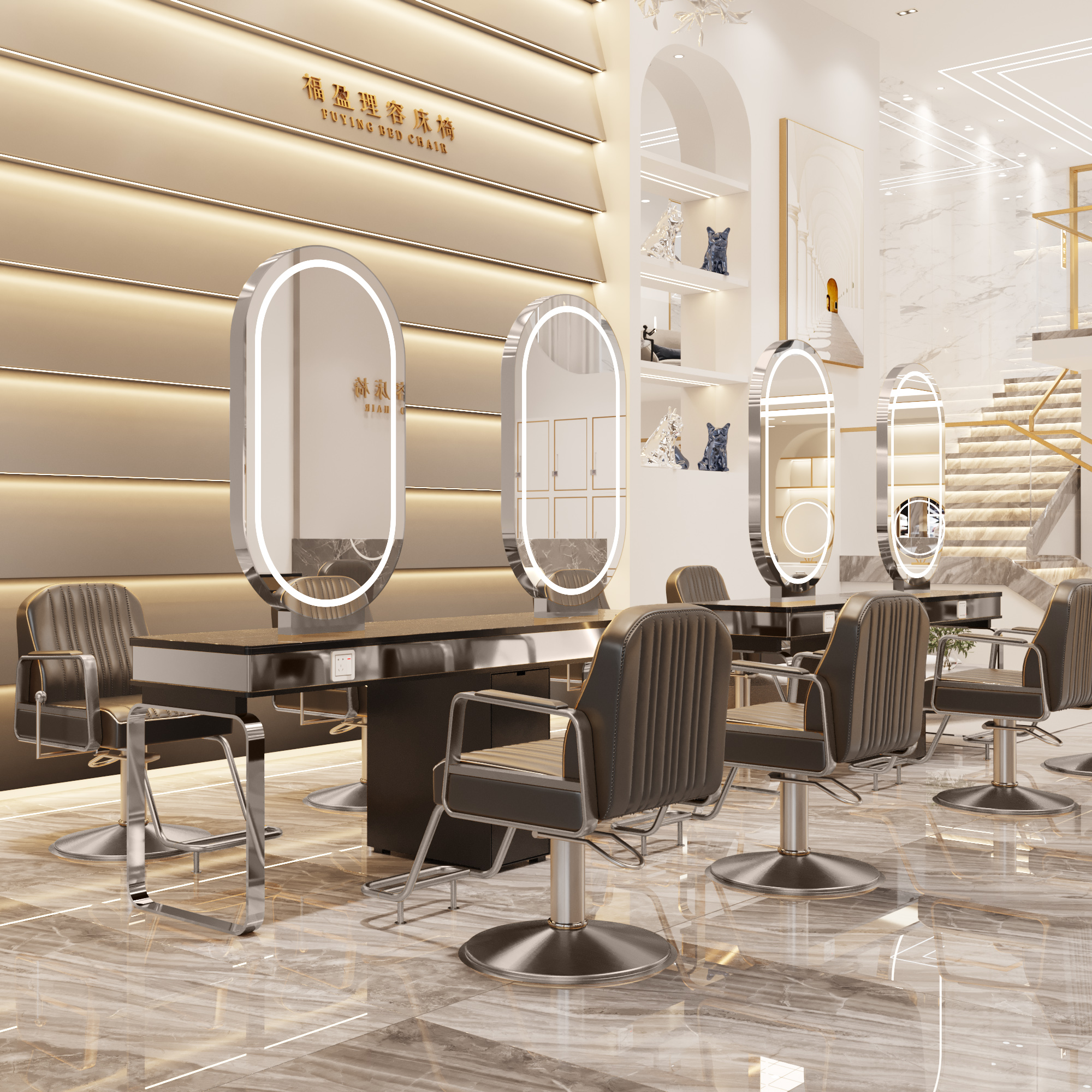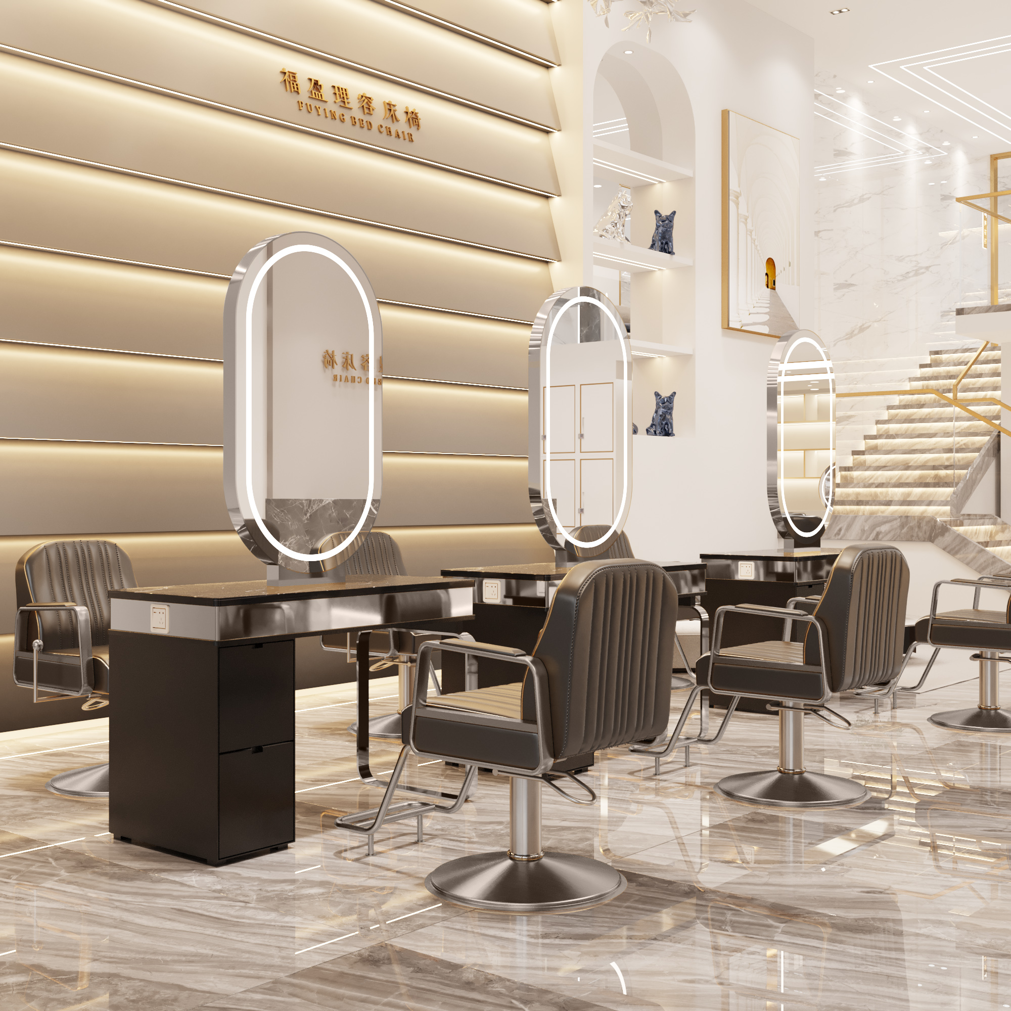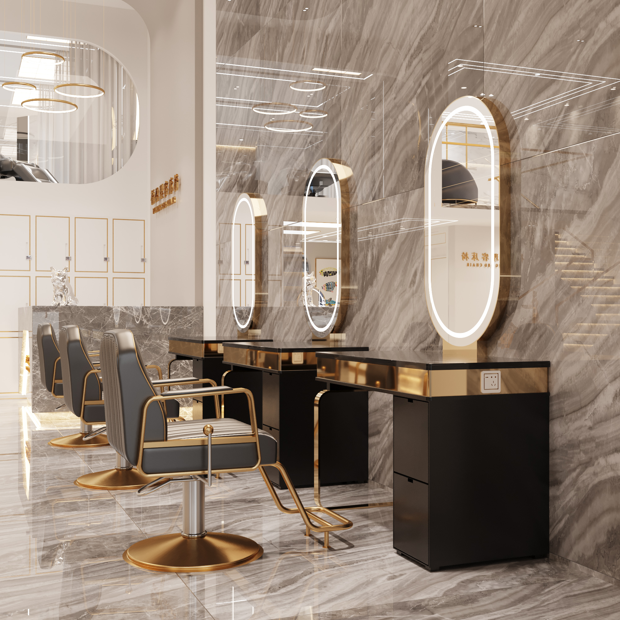 Stainless steel marble net red hair salon mirror barber shop cabinet integrated hair salon special led perm mirror table