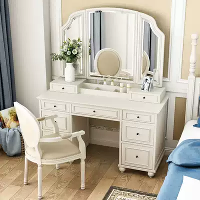 American makeup table bedroom modern simple makeup table light luxury small apartment solid wood White integrated storage cabinet