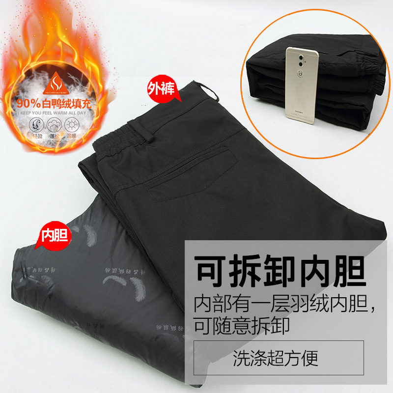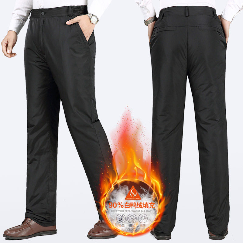 Down pants male outside wearing removable liner thickened high waist middle-aged and elderly warm loose with large size and size dpa dress cotton pants