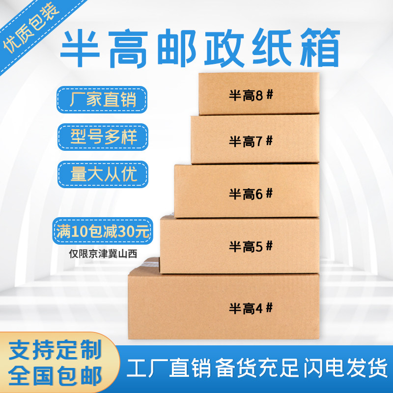 Carton half high Box Flat carton express packing rectangular flat shoe box reinforced box short paper box