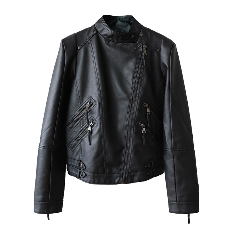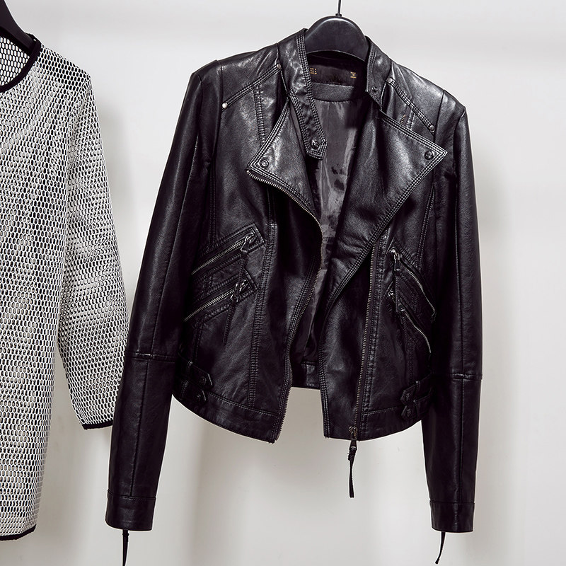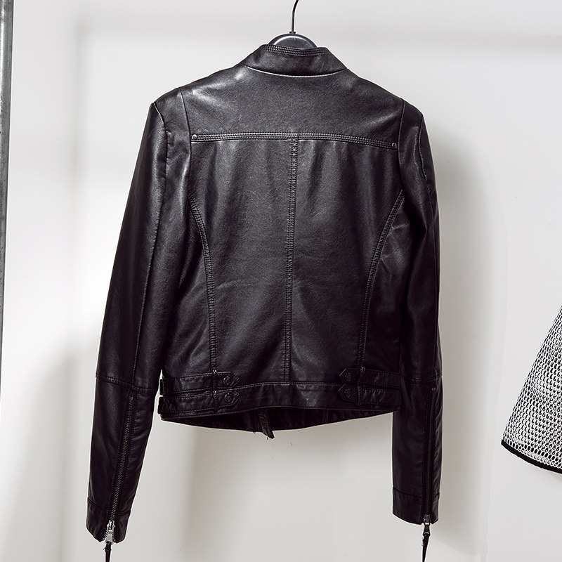 Korean black small leather jacket women's short spring and autumn new trendy fashion leather motorcycle stand collar jacket ins