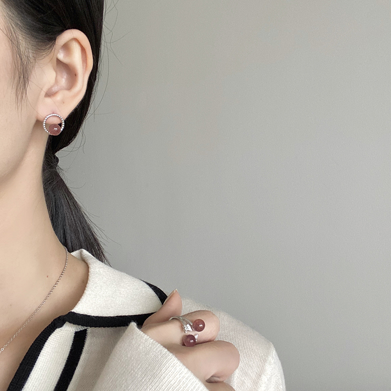 Strawberry crystal Peach Blossom Wane People Edge Cryolite Earrings Earrings Earrings 925 pure silver minimalist with delicate lukewarm wind