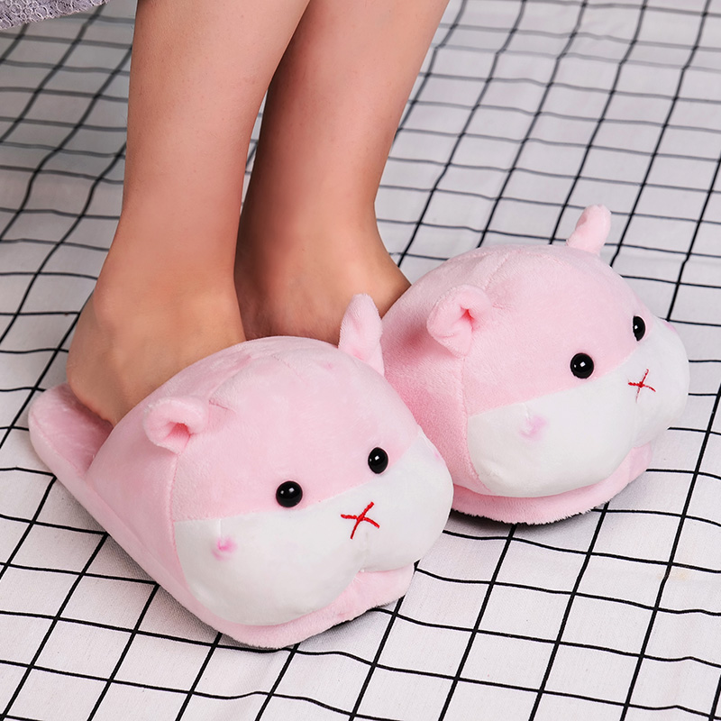 Powder Rabbit Bag Heel Cotton Shoes Powder Pig Slippers Grey White Hamster Slippers Pink White Hamster Slippers
