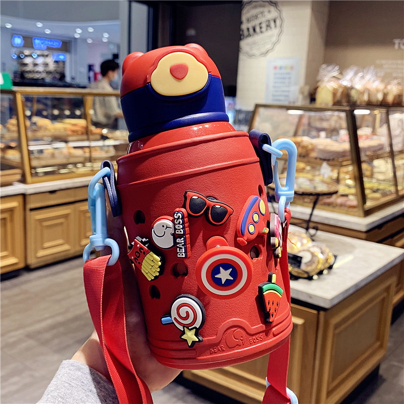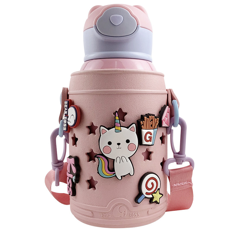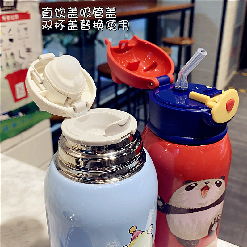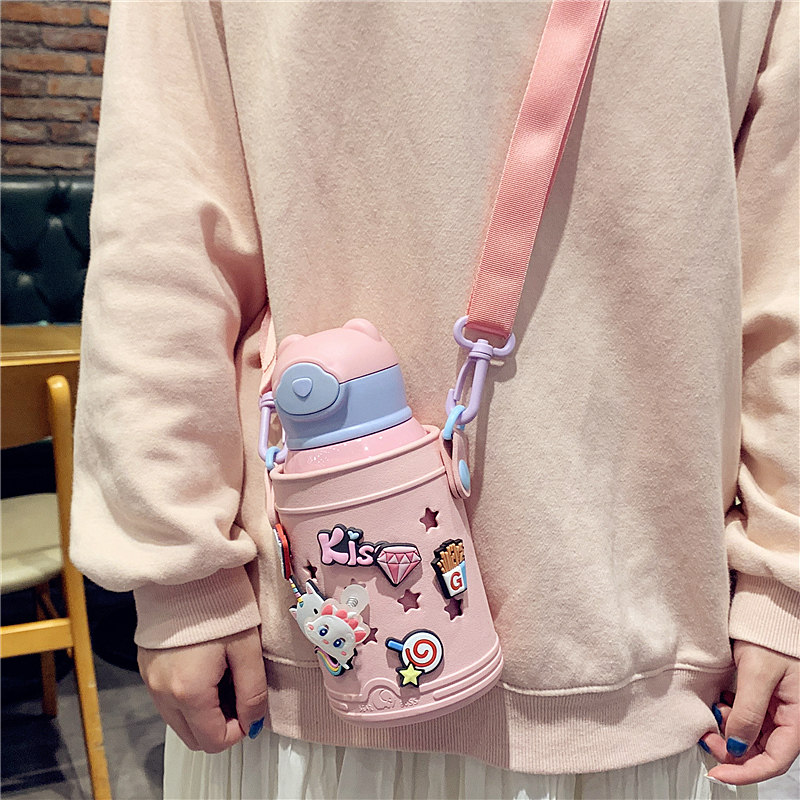 Creative Children's Insulation Cup with straw dual use pupils portable cross-kettle network red girl cute water cup