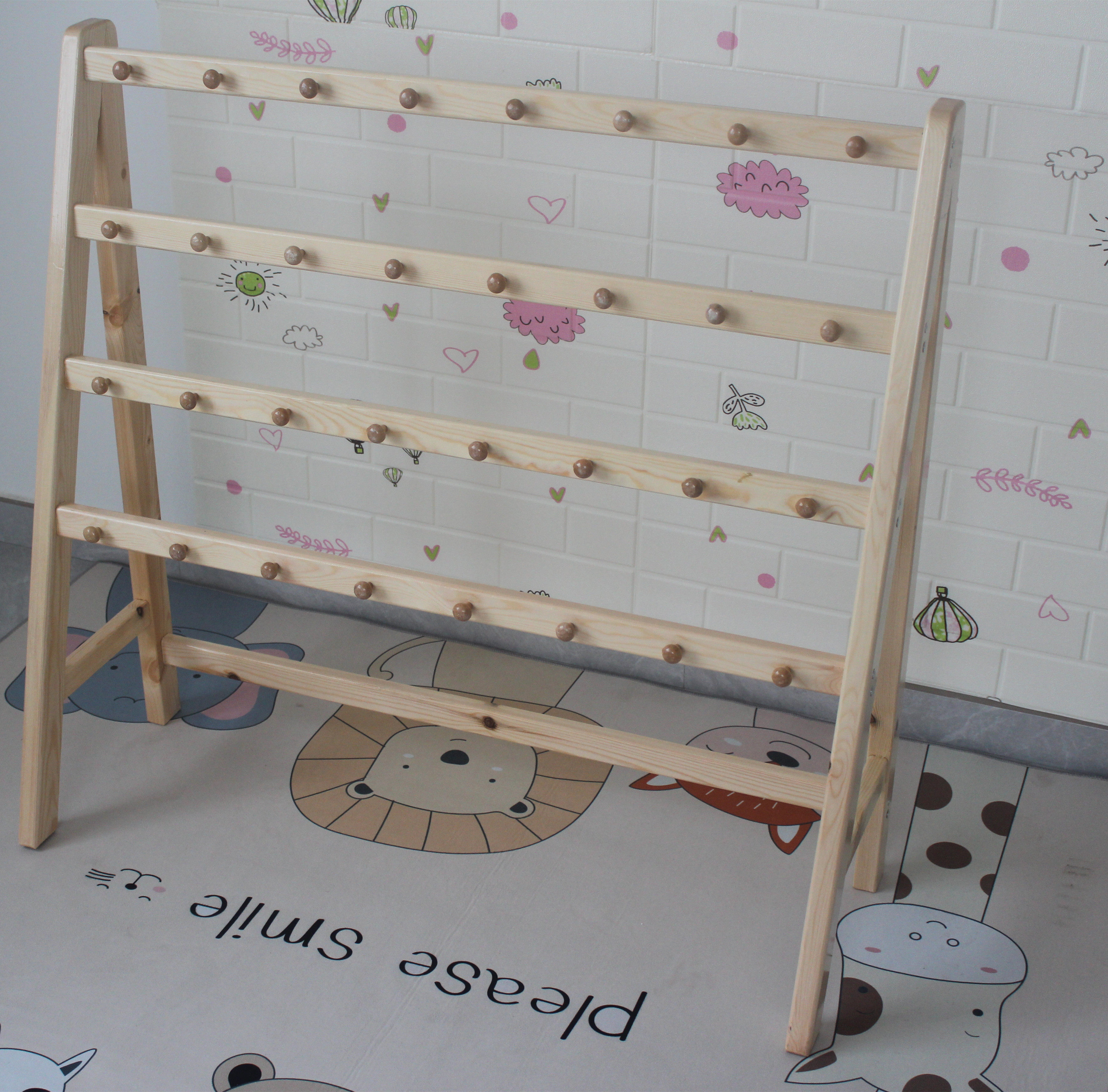 Kindergarten towel rack children's towel rack solid wood towel rack removable storage rack towel rack baby towel rack