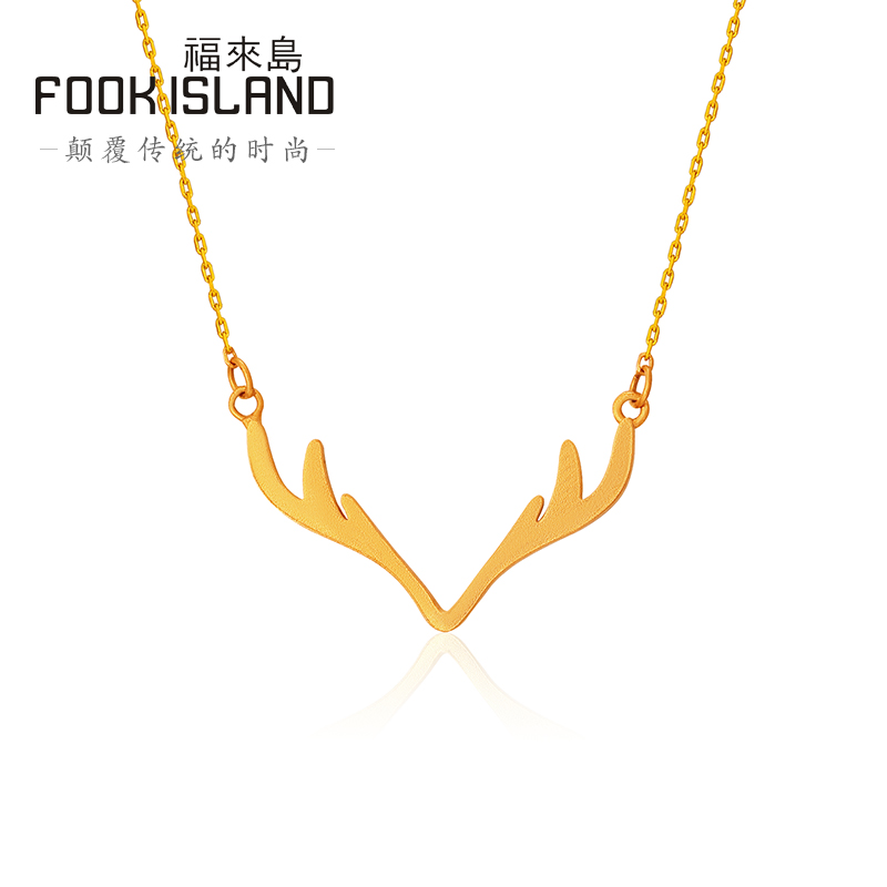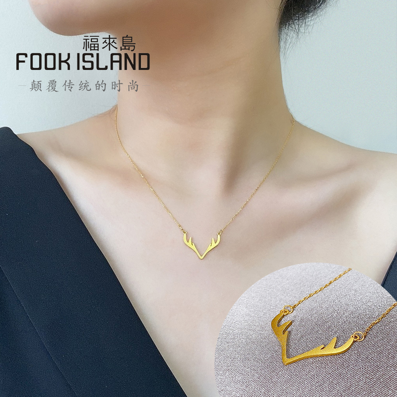 Fulai Island Gold Necklace Fashion Versatile Ancient Gold Clavicle Chain Simple Pure Gold 999 One Deer Has You Chain Female
