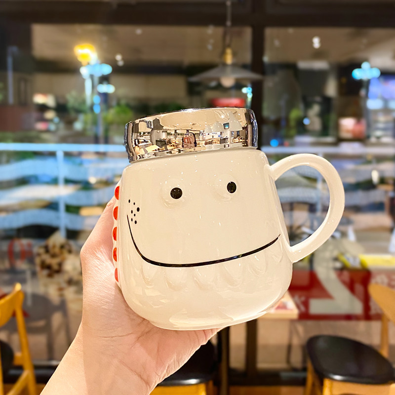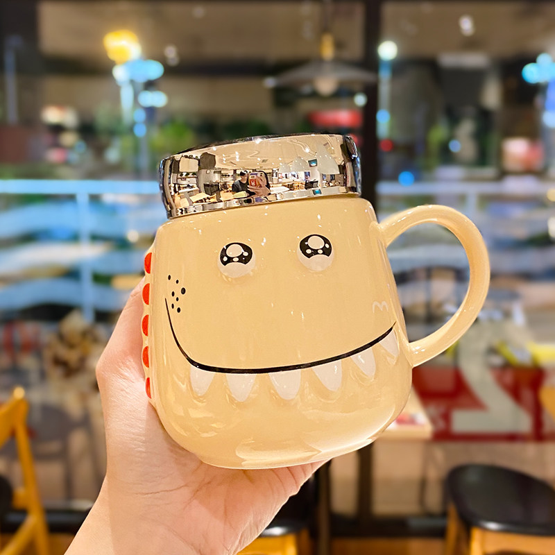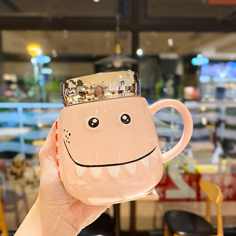 Creative Han Edition Personality Trends Ceramic Cups Cute Young Girl Hearts Dinosaur Water Cups Large Capacity Office Dorms Water