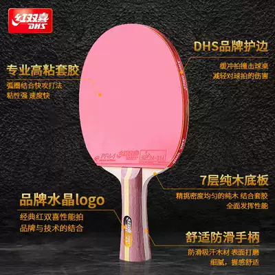 Red double happiness two-star T2002 horizontal shot 2006 straight shot double-sided anti-glue beginner 2-star table tennis racket long handle short handle