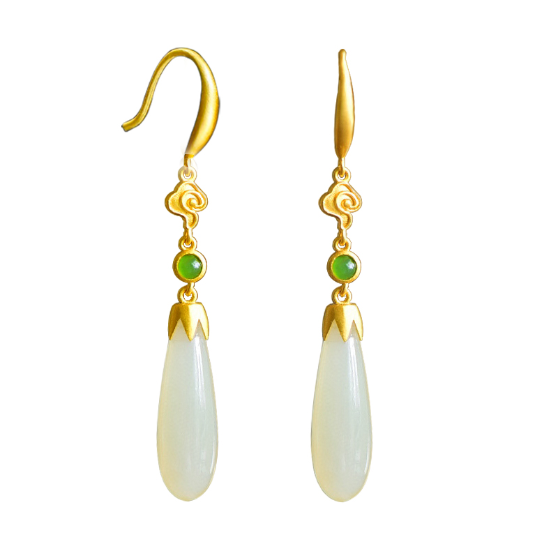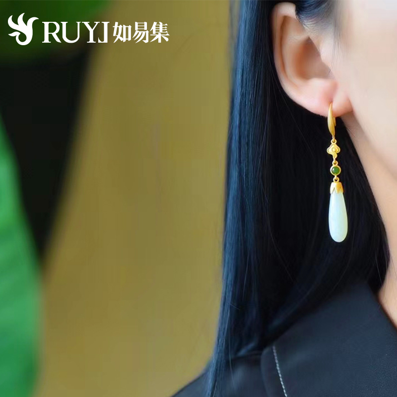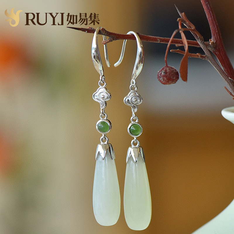 Drop-shaped and field jade earrings Fairy Gassen Ensemble Superfairy Sweet retro Earrings Classical China Wind Ear Hook Earrings Earrings Earrings