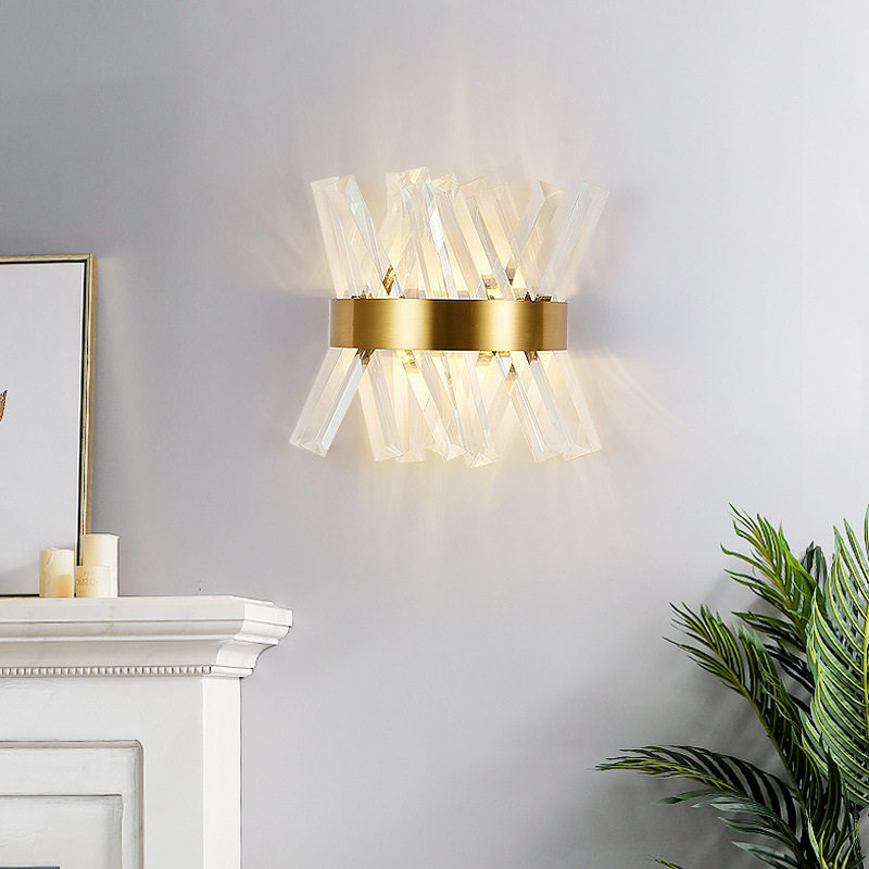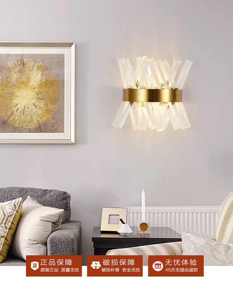 Post-modern luxury crystal wall lamp living room background wall creative staircase lamp charging wiring-free bedroom bedside lamp