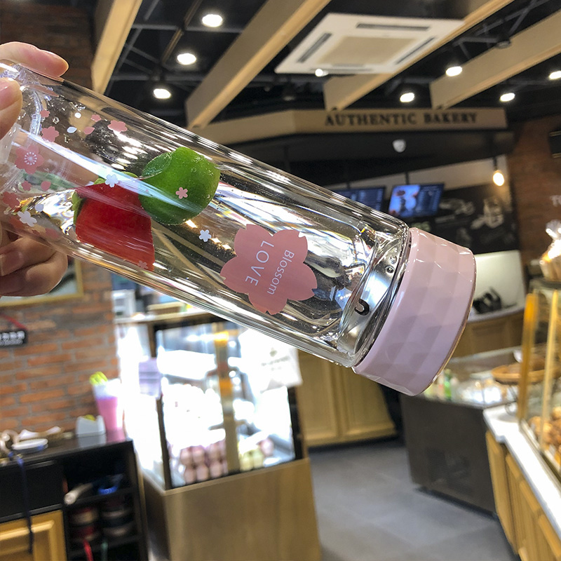 Small frescoed double layer insulation high temperature resistant glass cup with tea sepal tea water cup portable accompanying cup female moron cup