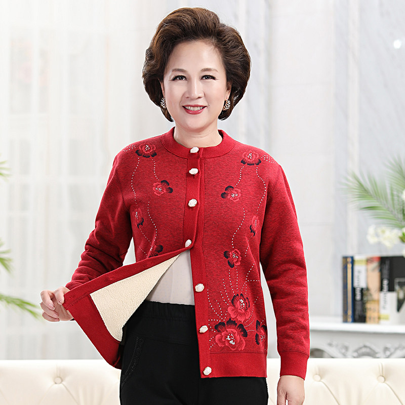 Flying in the snow in the elderly heating clothes women thickened velvet cardigan top mother loaded lambskin warm clothes winter