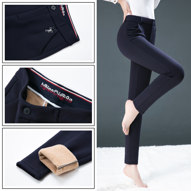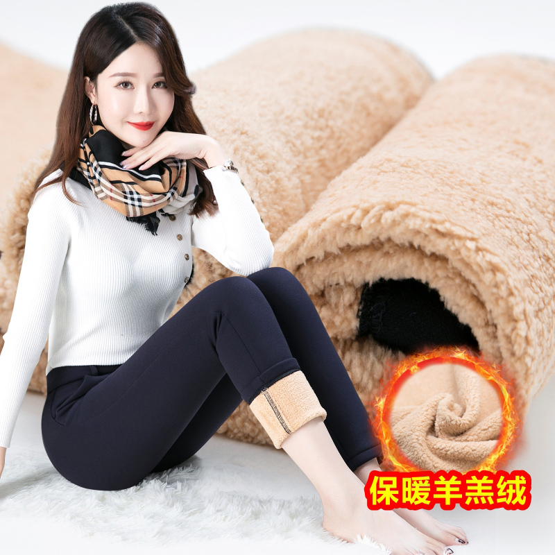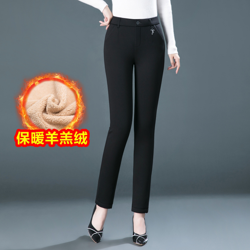 2020 winter new velvet thickened lambskin women's pants middle-aged casual pants high-waisted warm cigarette tube pants