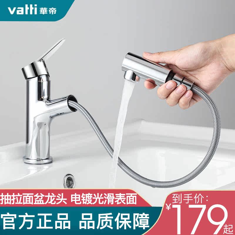 Huadi stainless steel pull-out basin powder room faucet Hot and cold face wash hand wash telescopic bathroom faucet Household