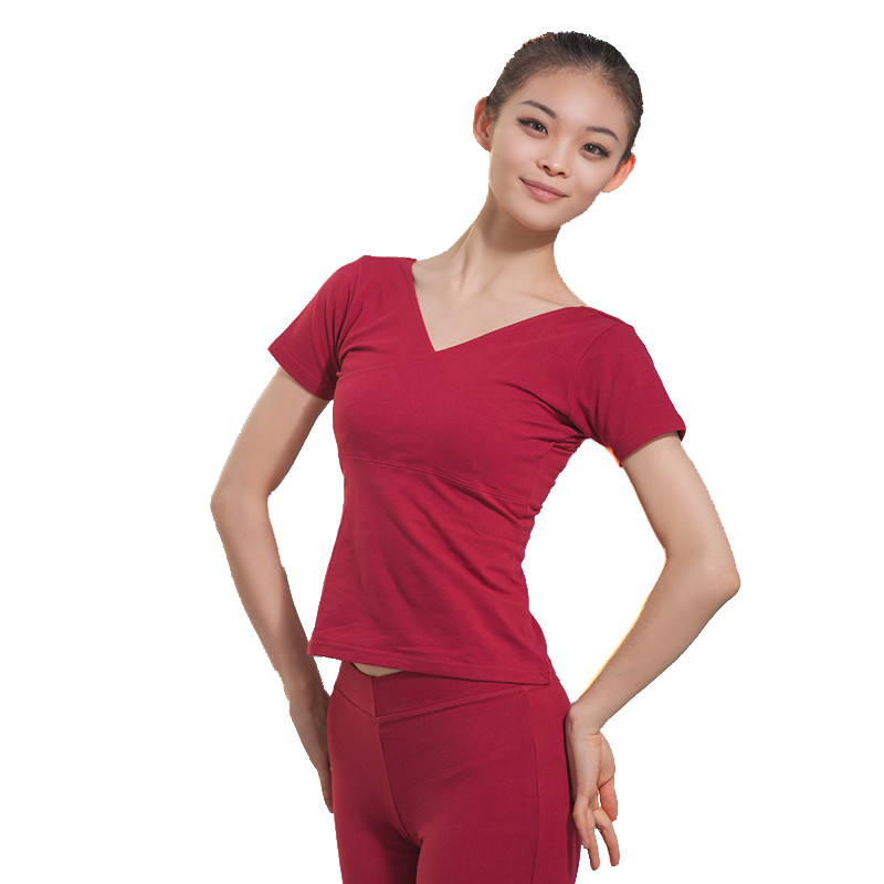 Dance suit ballet to suit adult short sleeve tops V reveal yoga clothes t-shirt body dance dress