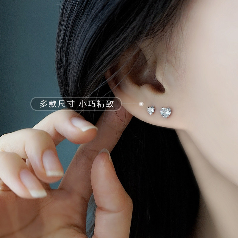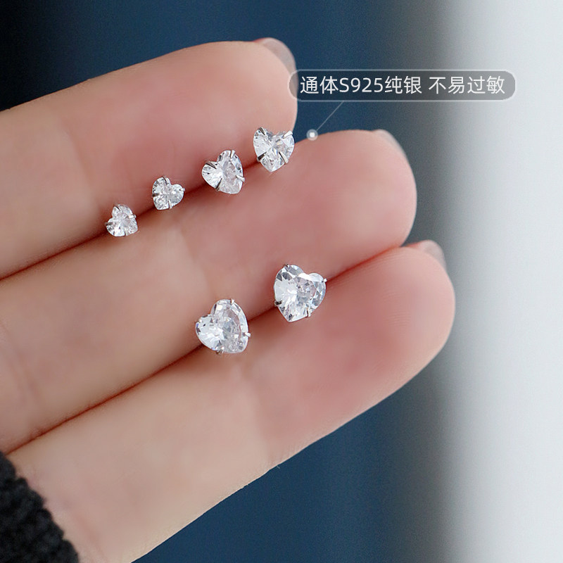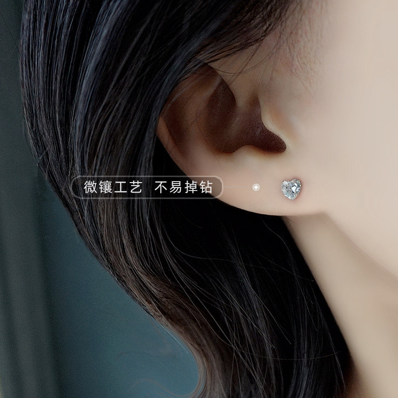 s925 sterling silver needle love ear needle peach heart-shaped zircon earrings high-quality temperament fashion simple small earrings women