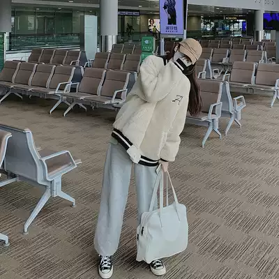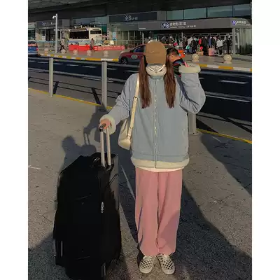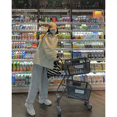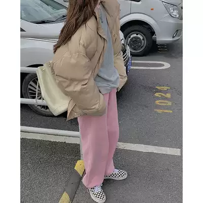 White water women's high waist drawstring drawstring pants women's spring and autumn new Korean version loose thin wild thickened gray trousers