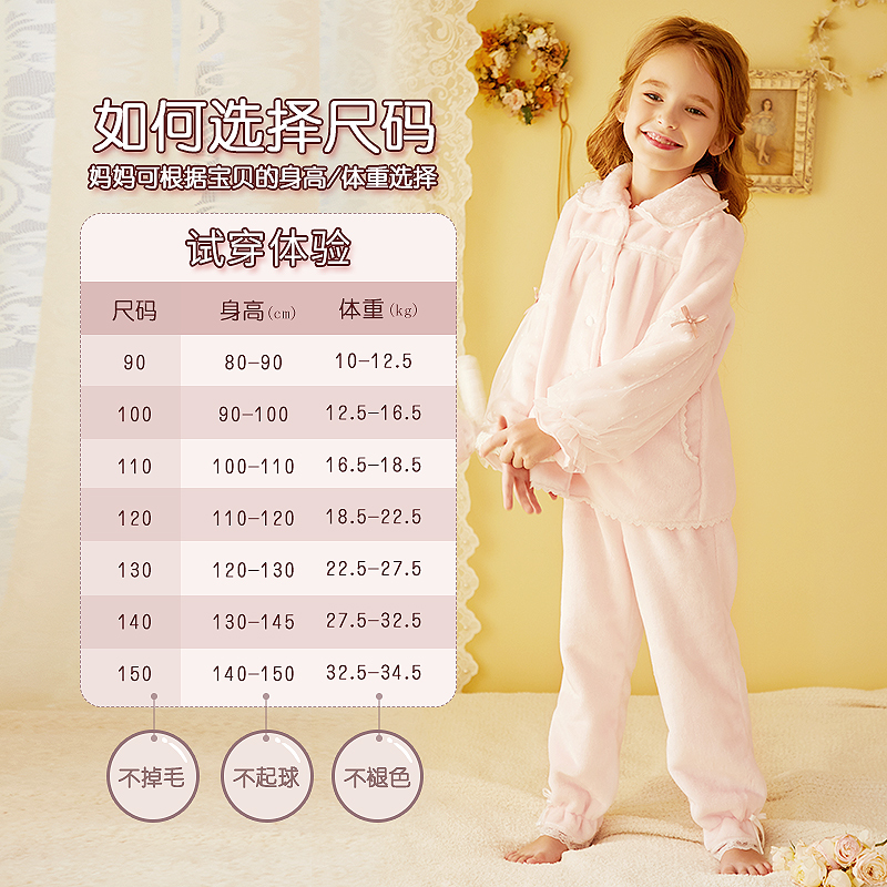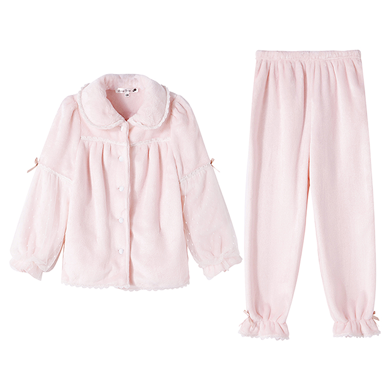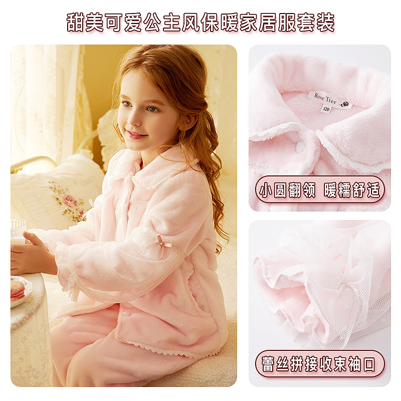 RoseTree girls coral fleece pajamas autumn and winter children's flannel thickened little girl baby home clothes suit