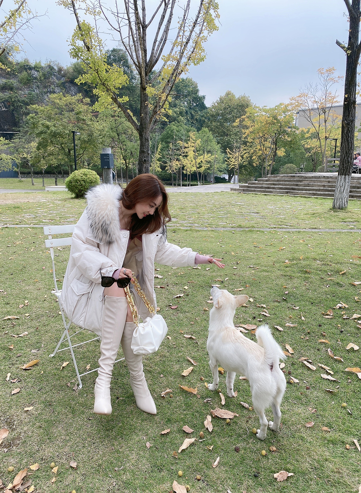 LDTJ Gaoding spring 2020 new loose in the long version of the big hair collar down jacket white duck down warm jacket