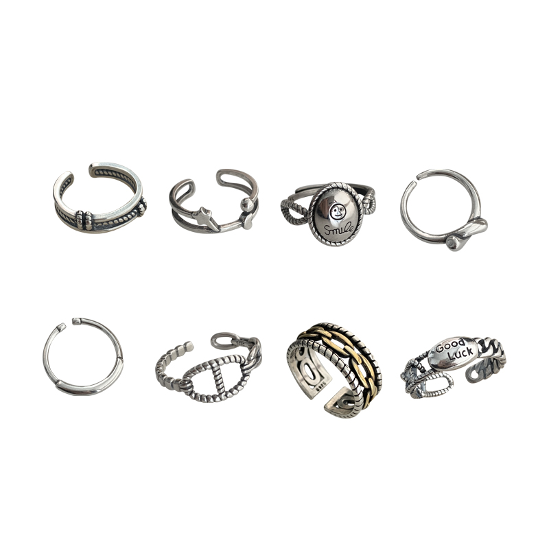 925 pure silver oval smiling face opening ring one 925 pure silver pig nose opening ring one 925 pure silver line twisted opening ring one 925 pure silver multilayer knotted opening ring one 92