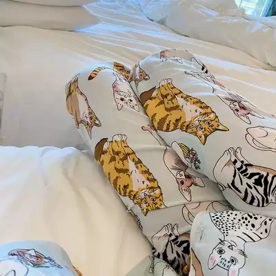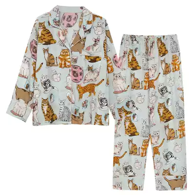 Cat cotton silk pajamas women's spring and autumn thin cardigan cute cartoon suit long sleeve Net red with new home clothes