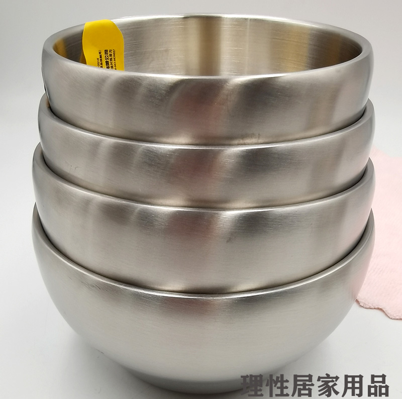 Whiteness 304 Stainless Steel Bowl Chinese Frosted Bowl Double Insulation Thickened Bowl Baby Children Size Home Bowl-Taobao