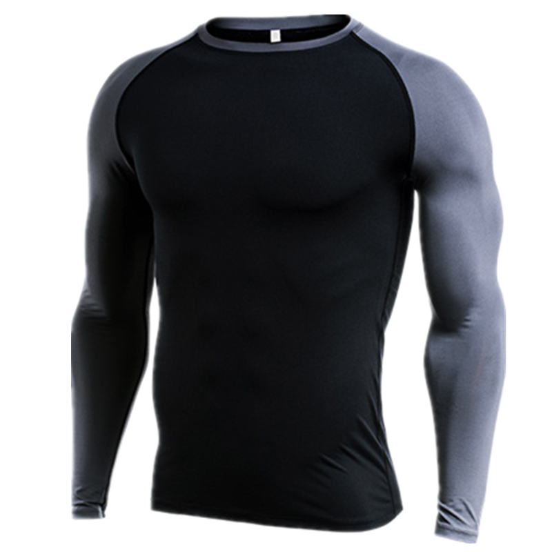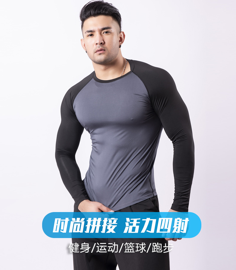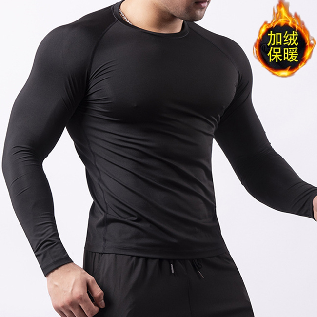 Autumn and winter long sleeves T-shirt men's fitness repair tights sports round collar elastic and velvety warm running polyester fiber blouses black