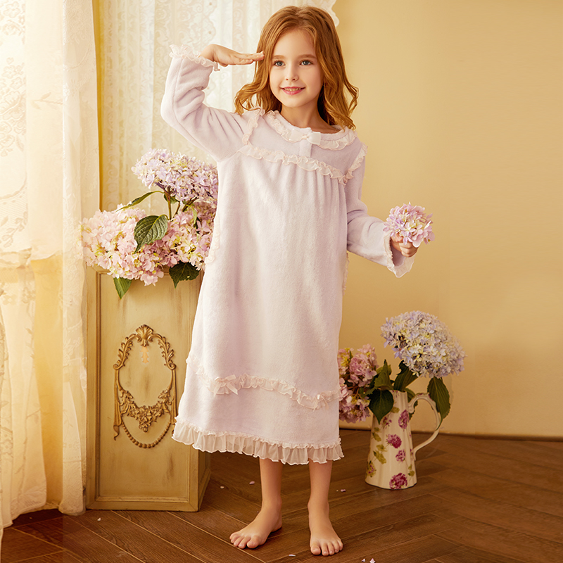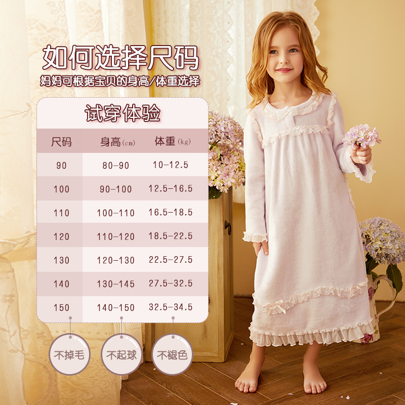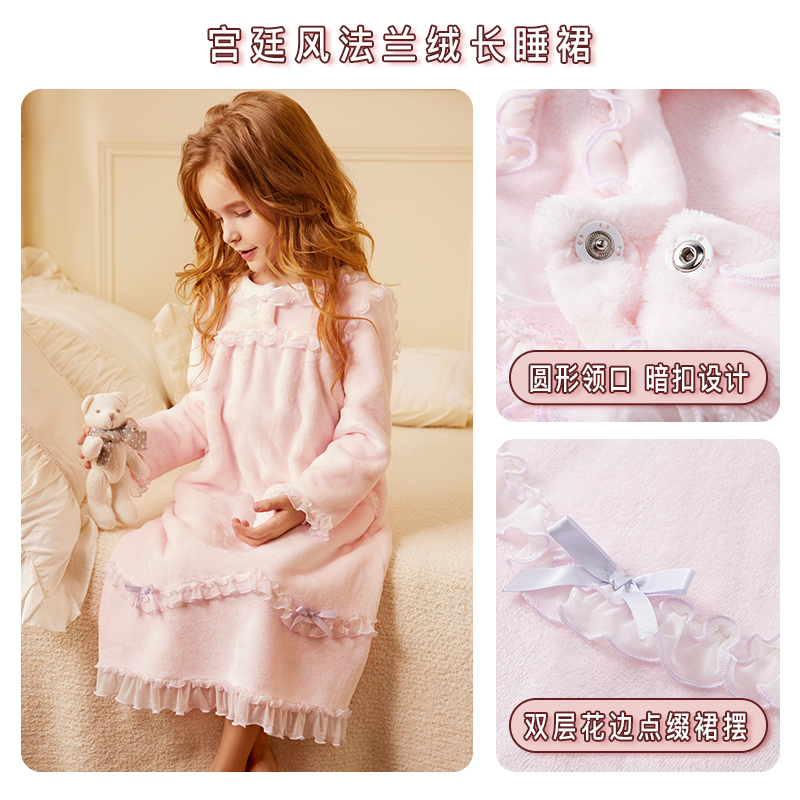 RoseTree children's nightdress female autumn and winter flannel baby girl princess pajamas coral fleece thickened and warm