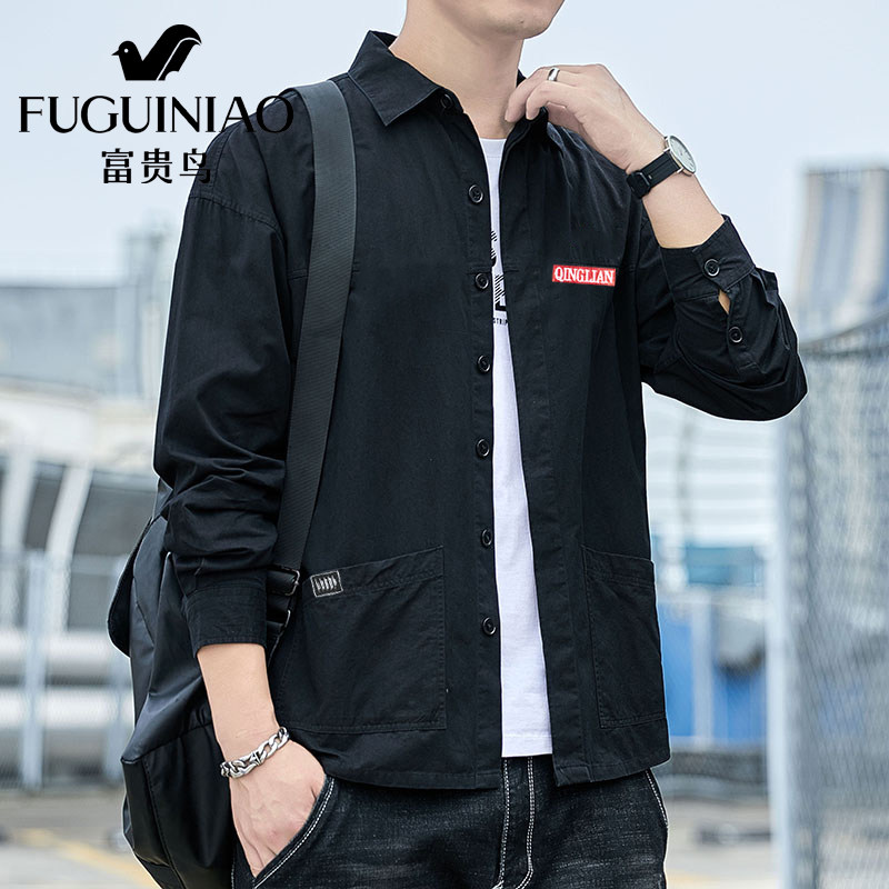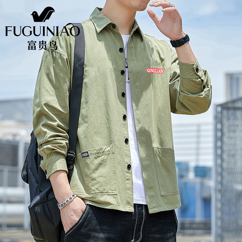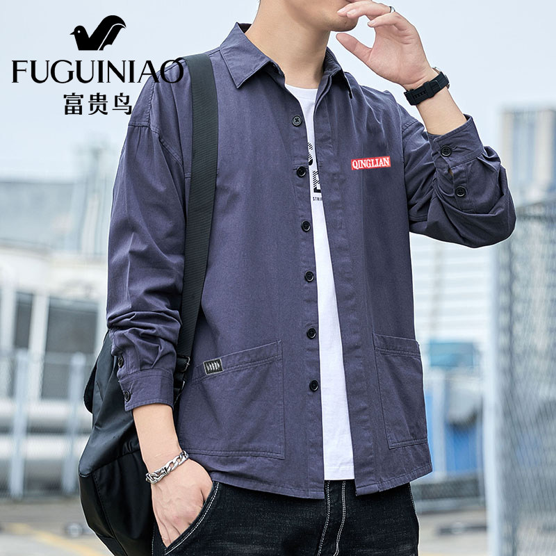 (Designer Tide Brand) Rich Bird Men's Cotton Loose Workwear Shirt Casual Iron-Free Shirt Jacket