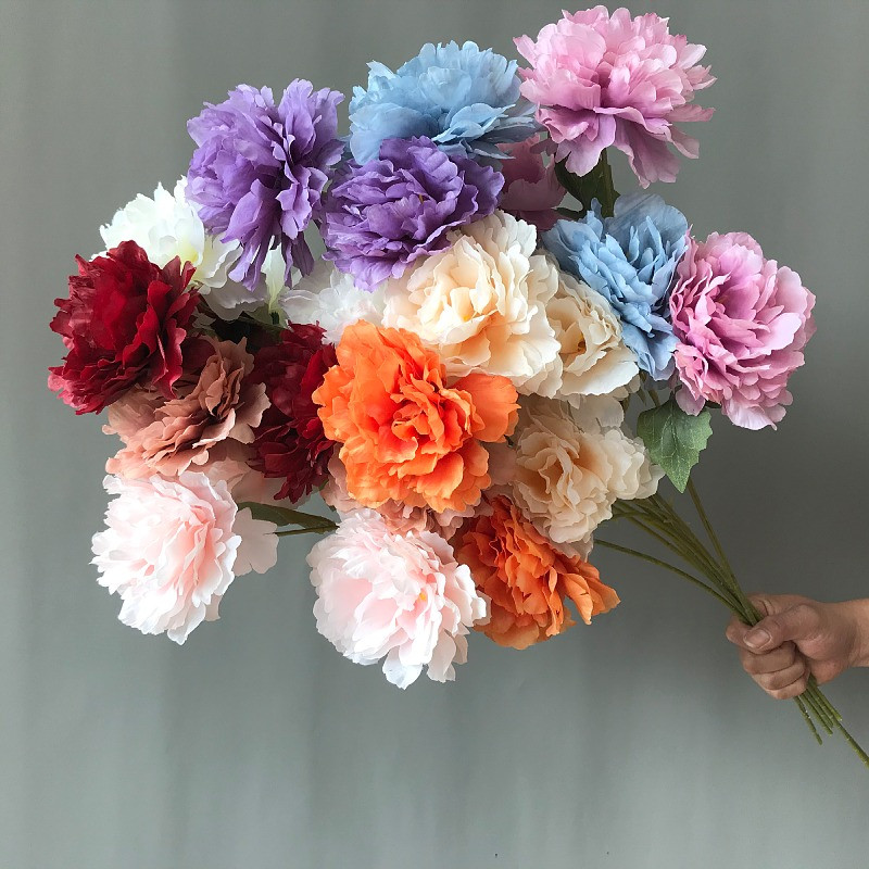 Foreign peony simulation flower wedding flower material silk flower fake flower European lotus crane peony flower wedding arrangement flower arrangement road lead flower