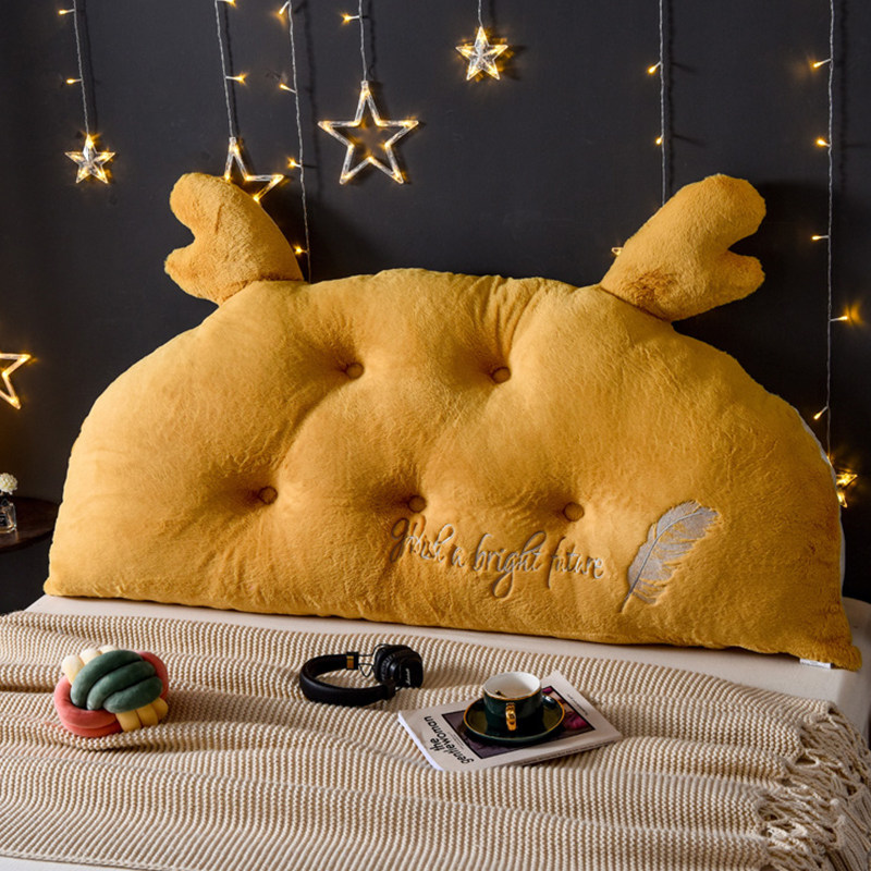 Cute antlers bedside cushion cartoon double pillow bed soft bag bed princess large backrest universal removable and washable