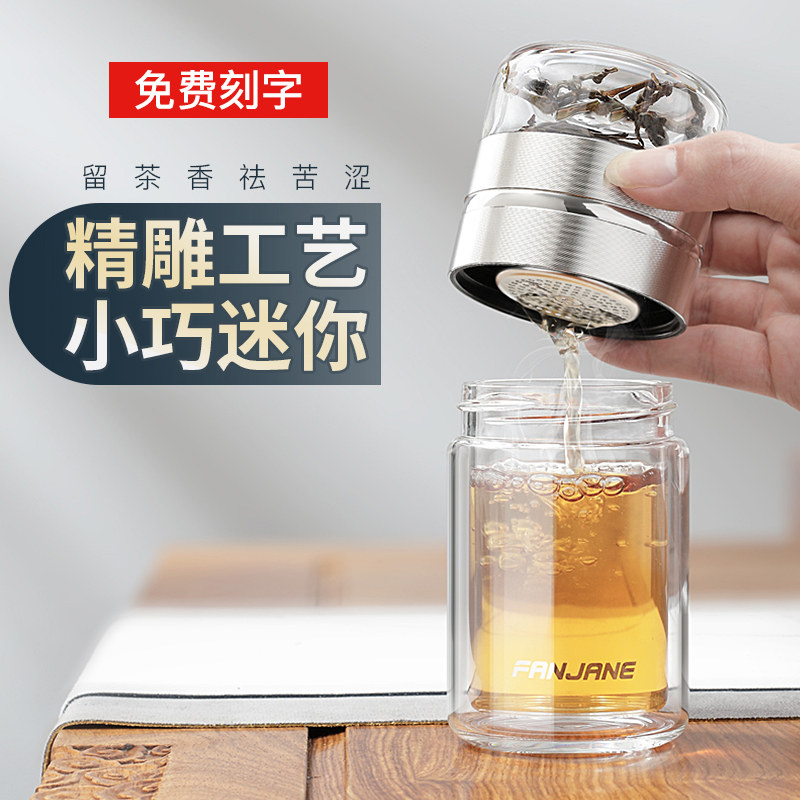 Tea cup men upscale mini double glazed portable minimalist freshener tea cup filter tea water separation cup