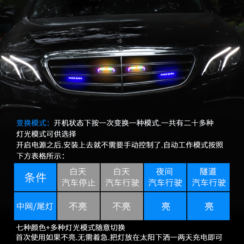 Solar car anti-rear-end flash light free wiring Electric motorcycle truck strong light warning brake taillight modification