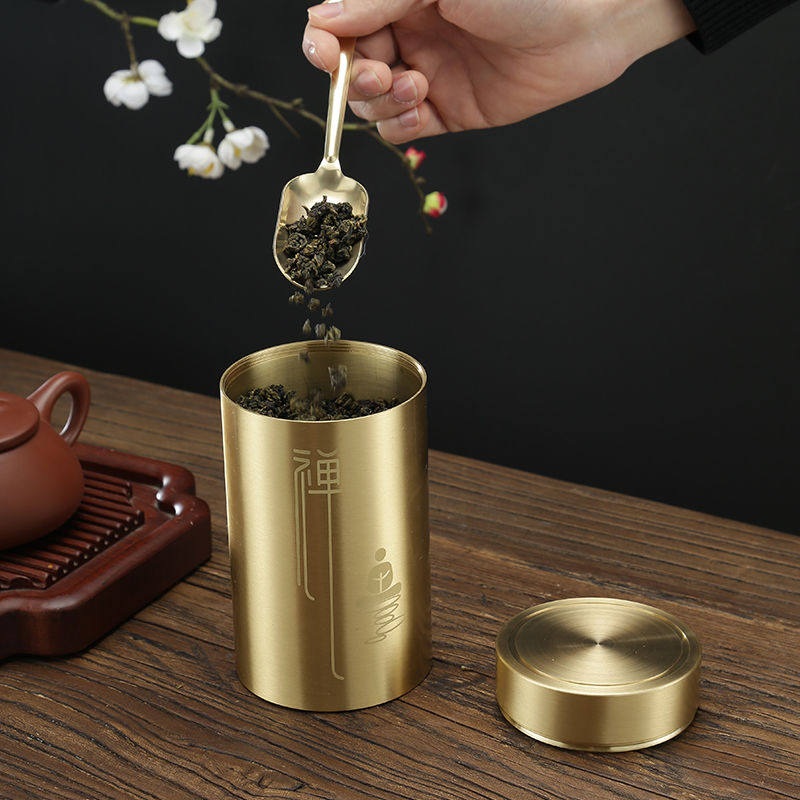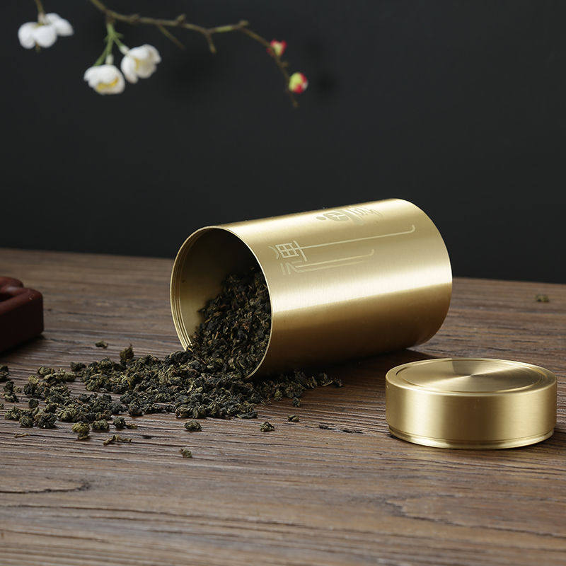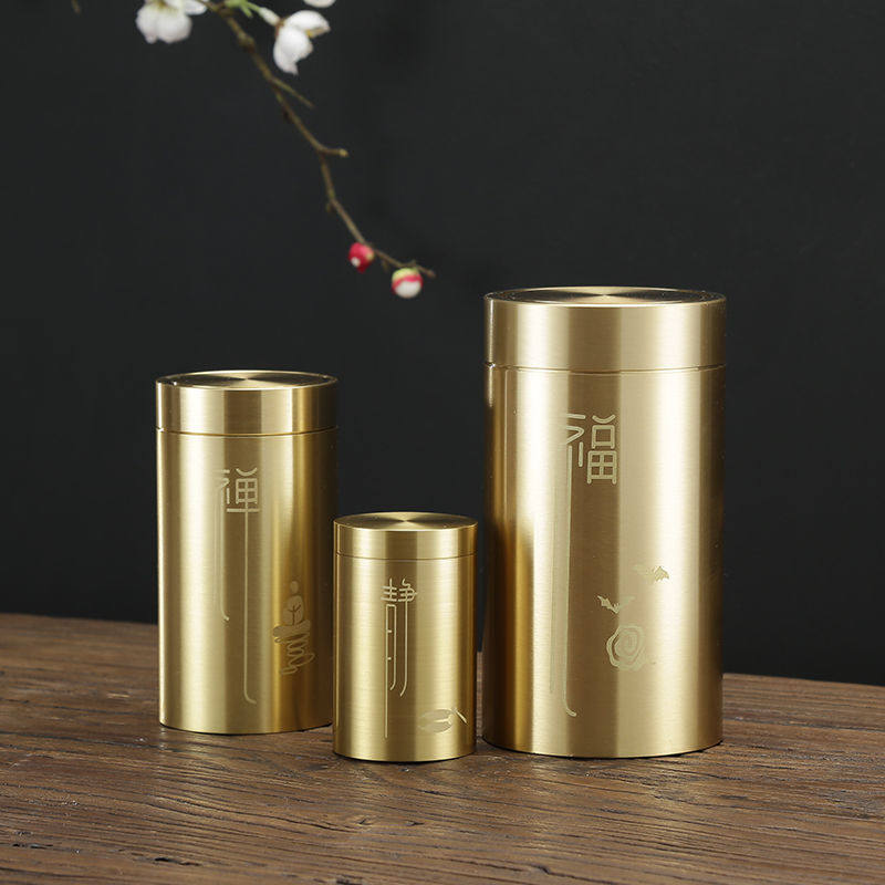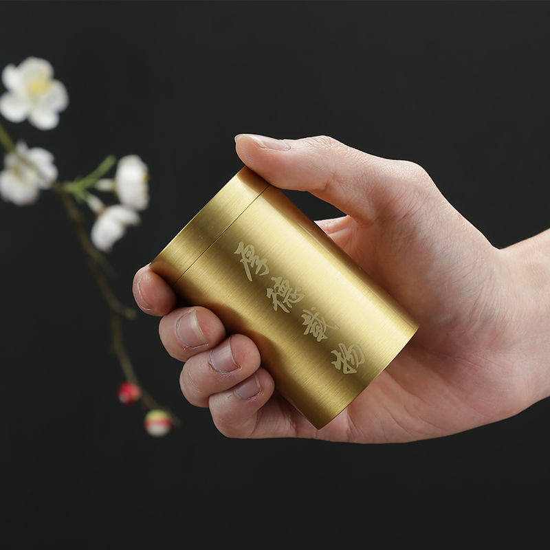 Brass tea pot travel portable sealed pot personality tea storage pot small copper tea set tea ceremony spare parts