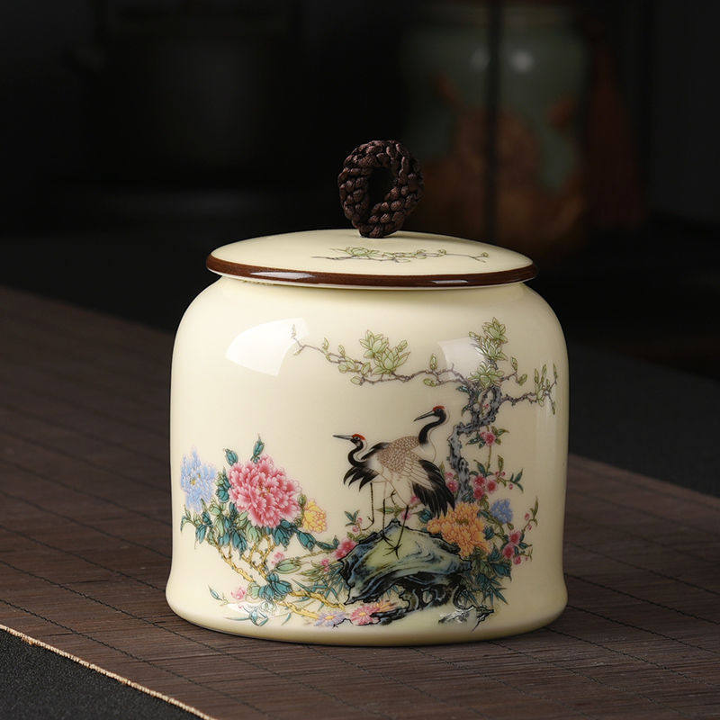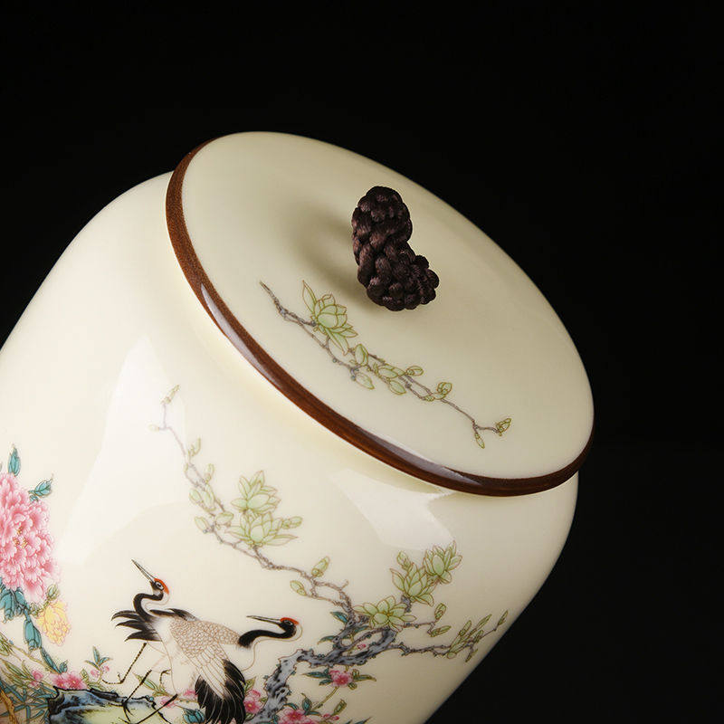 Fu Shoubi Full Tea Leaves Jar Pine Crane Windsuru Tea Leaf Jars Jars Jars Pot Longevity Pine Crane Tea Leaves Jar Plum green-flowers open rich and expensive (affordable price) plum green-happy eyebrows plum green-summer