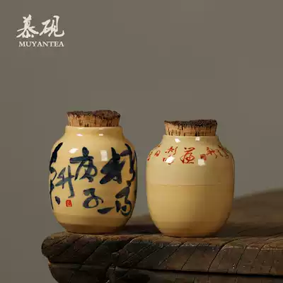 Mu Yan ash retro Japanese-style small tea can Jingdezhen tea storage portable mini tea warehouse handwritten tea poem cork
