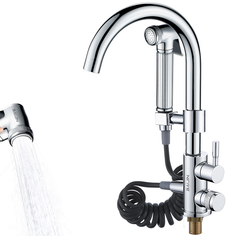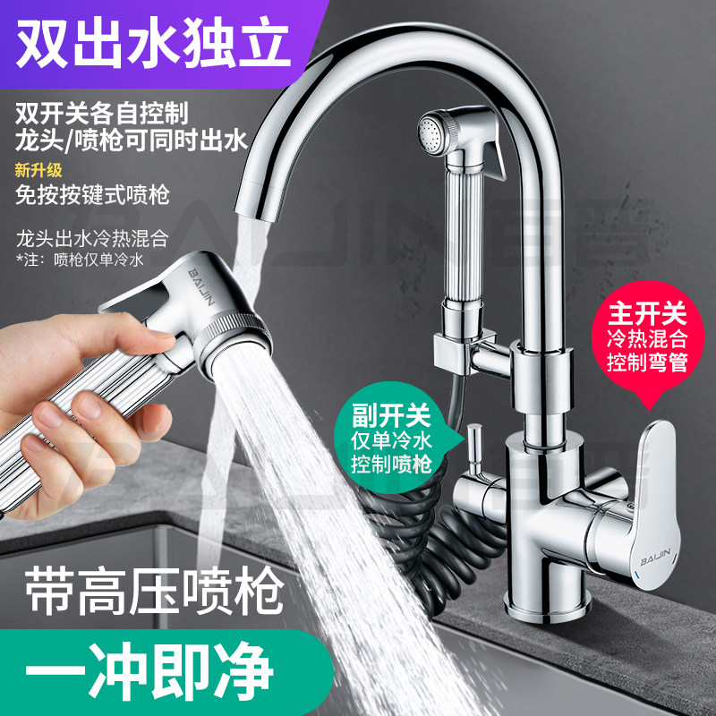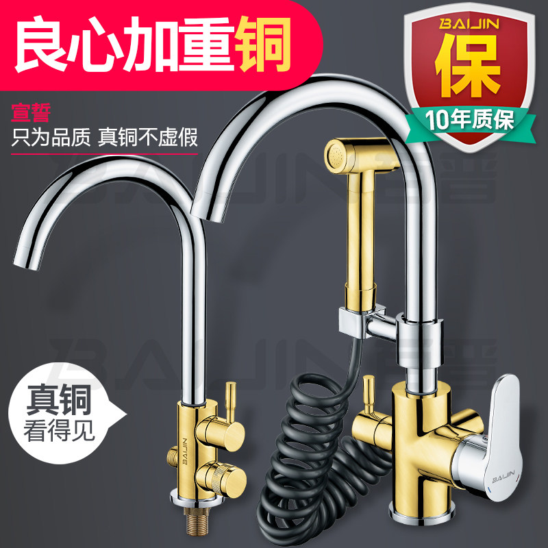 Balcony mop pool tap sitting style with spray gun lengthened double water outlet laundry pool single cold pier cloth pool high-pressure spray head-Taobao