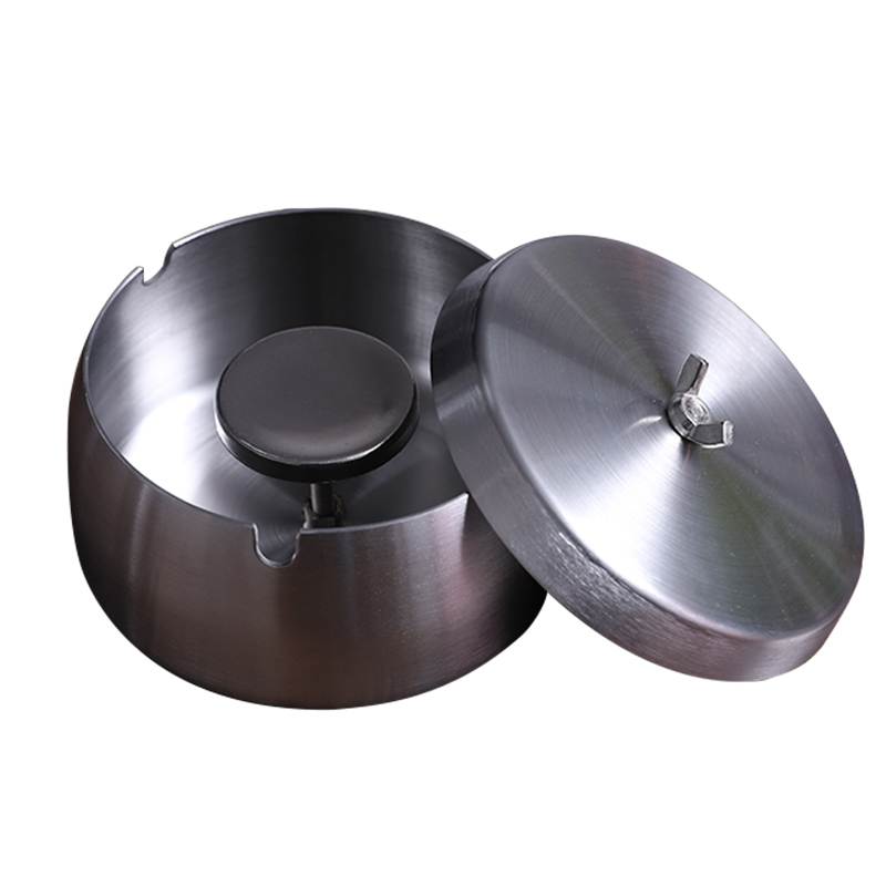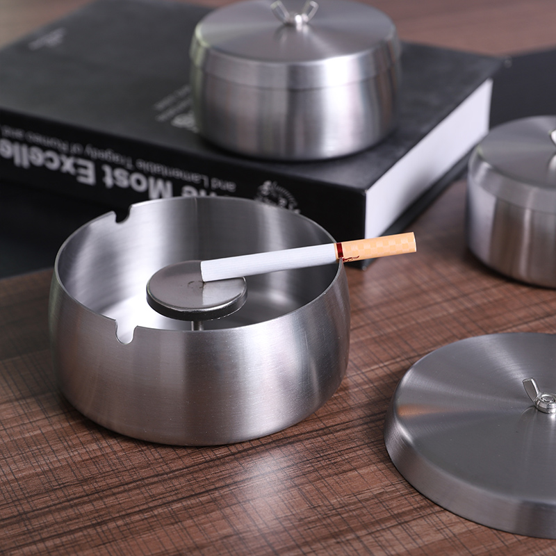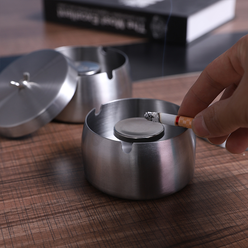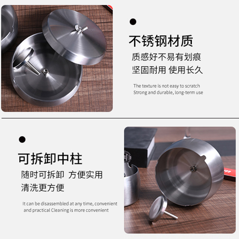 High-end stainless steel small ashtray with lid and lid home office anti-fly ash metal ashtray smoke extinguishing column