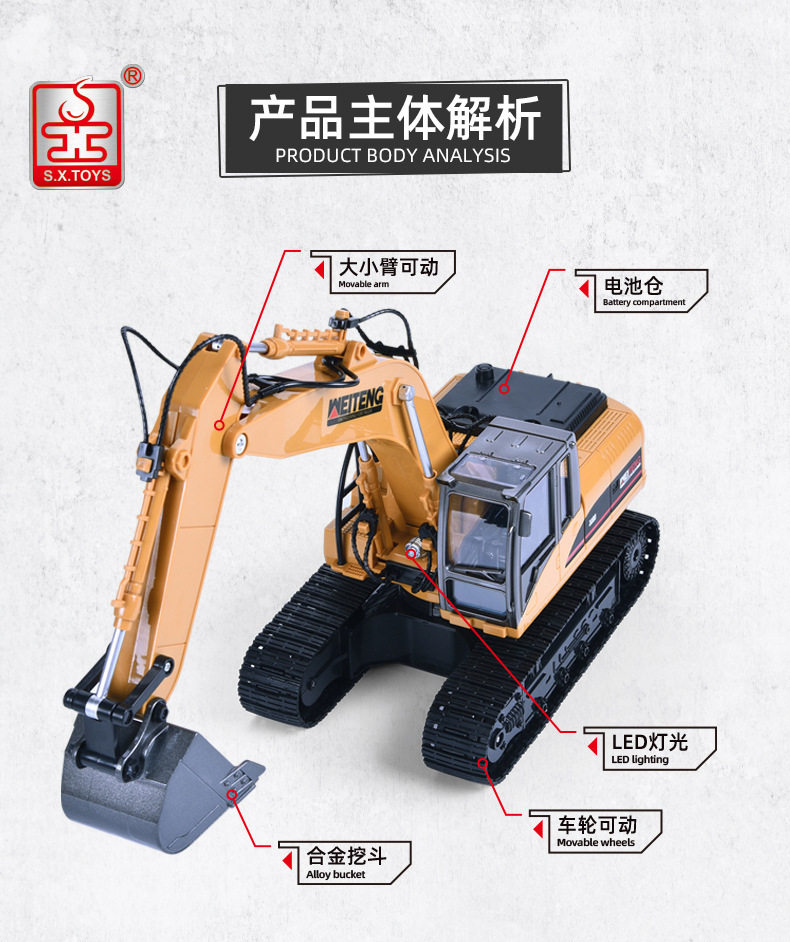 Weiteng remote control alloy excavator tank engineering vehicle boy gift electric charging 6--14 years old simulation sound effect