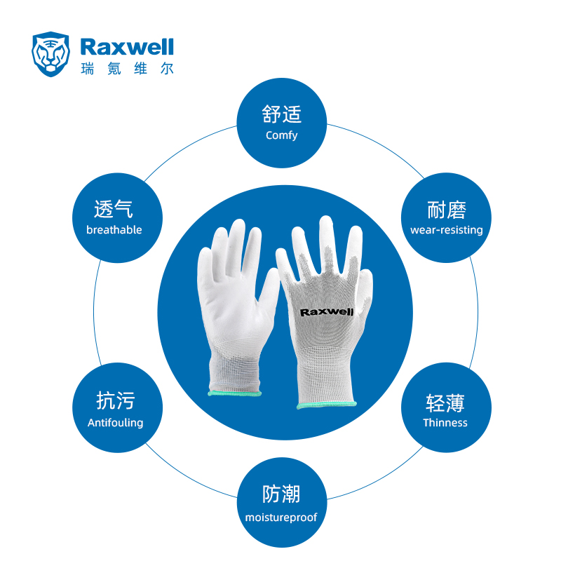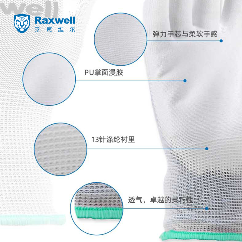Raxwell Labor Gloves Polyester Fiber Knit PU Work Gloves (Palm Dip) Soft Breathable Independent Fit 10 Deputy Package