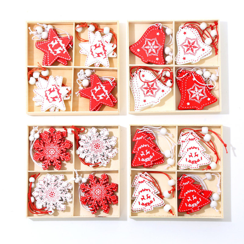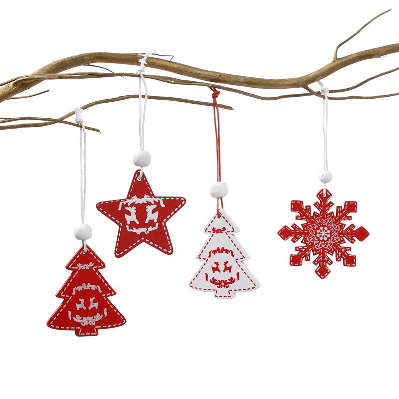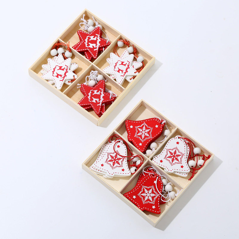 Nordic wooden hanging ornaments Hanging Snowflake Mini Christmas Tree hanging accessories Star wood Chips Christmas decorations boxed