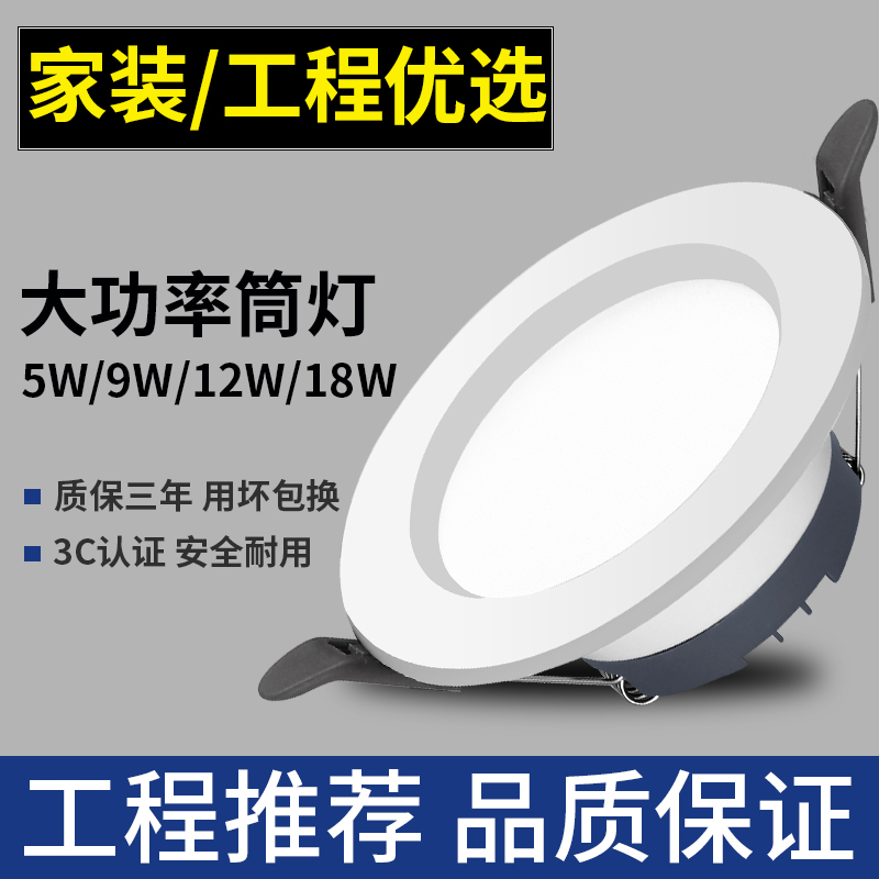 4-inch cylinder light led12W hole lamp Home Living room ceiling lamp 6-inch 18W Embedded bucket light Drilling 7 5cm dongle lamp