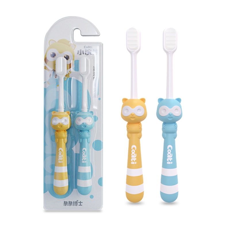 Small raccoon children toothbrushes 1-3 years old young children 6 + years old children change tooth period fine soft ten thousand gross training toothbrush suit