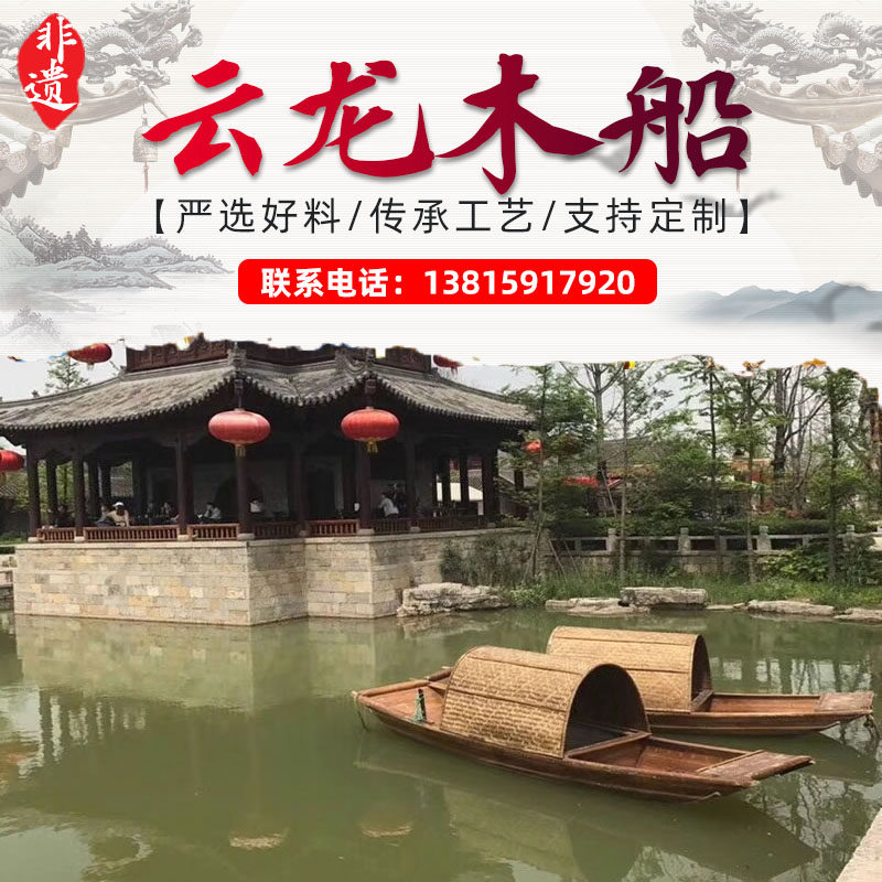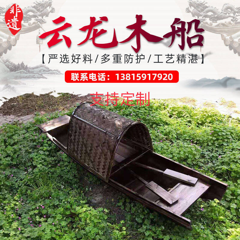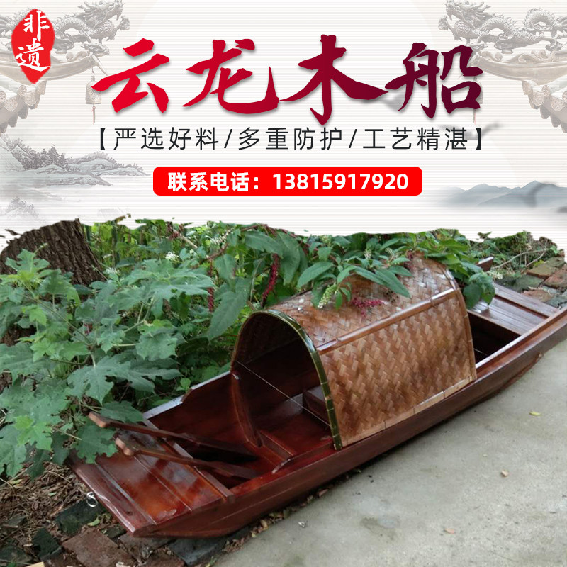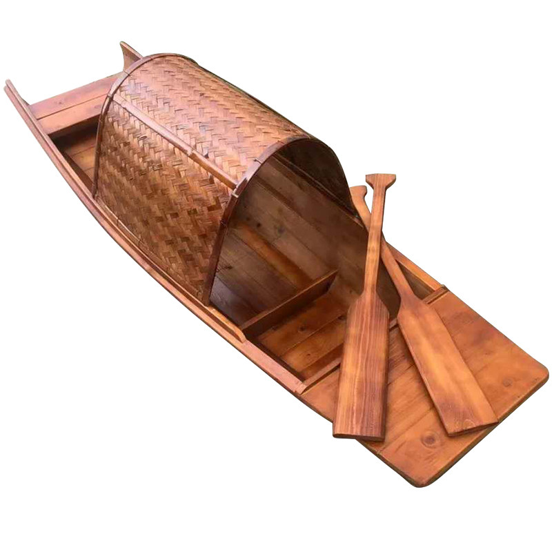 Antique awning boat small wooden boat fishing boat outdoor solid wood decoration water sightseeing electric cruise boat awning landscape props