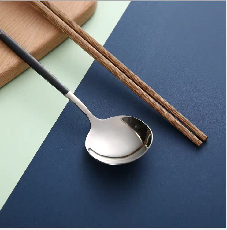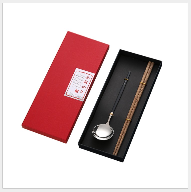 Chinese public chopsticks public spoon portable alloy tableware set solid color chicken wing wood public chopsticks spoon gift box