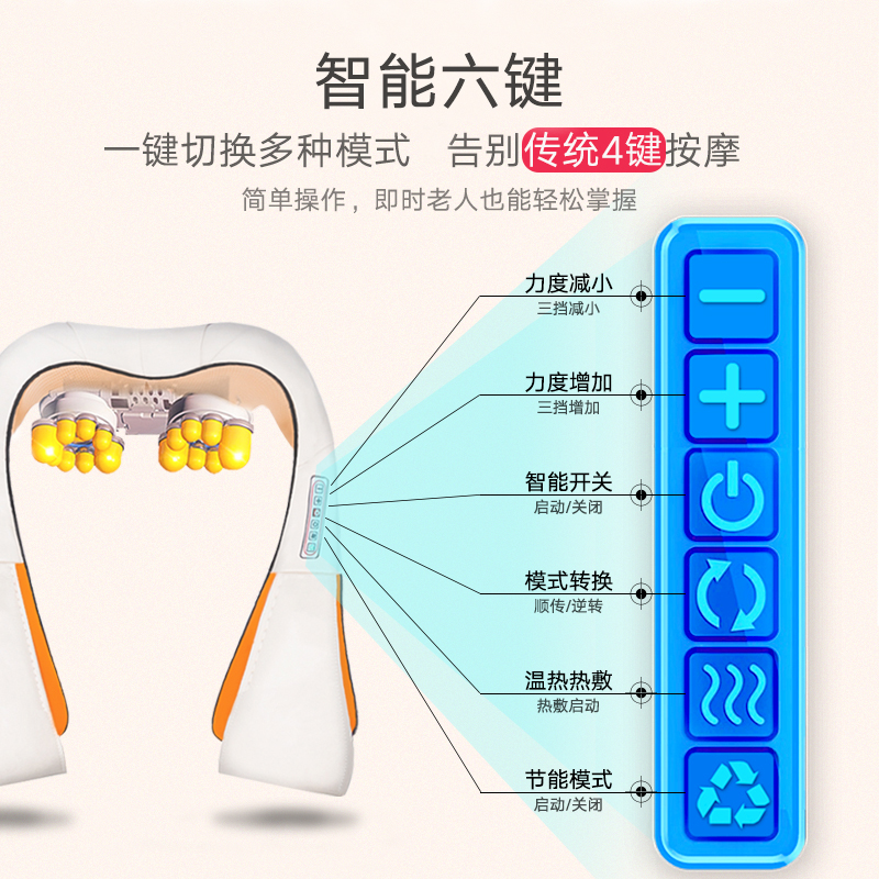 Plug-in three key hot compress kneading and pushback with four key hot compress kneading and knead push with three-gear speed-adjustable deep massage plug-in electric six key hot compress kneading and knead push with three-gear throttle multi-mode energy saving