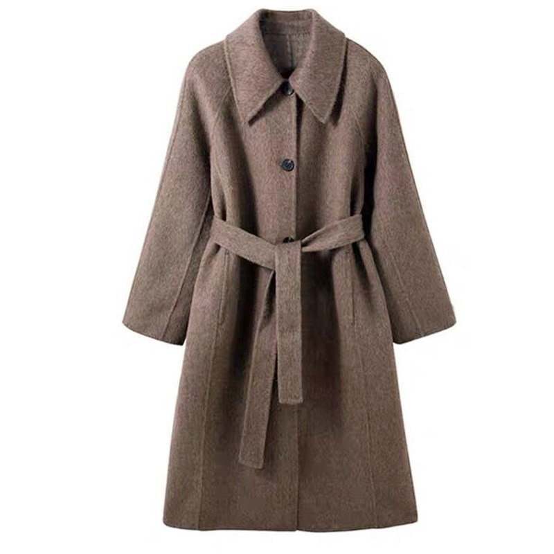 Coffee-colored woolen coat women's mid-length version winter 2022 new thickened small temperament Hepburn woolen coat