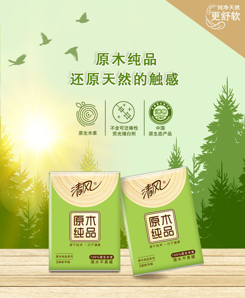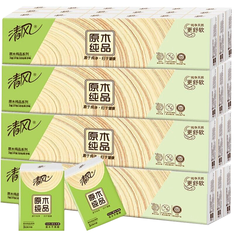 Qingfeng handkerchief paper log pure product 10 pieces small bag cute napkin paper facial tissue portable portable affordable 30 packs